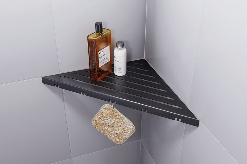 Ablago Classic Design zuhany sarokpolc fogassal, matt fekete, háromszögletű (abl11035bs)