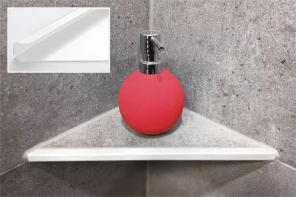 Ablago Q220 burkolható zuhany sarokpolc, négyzet él, matt fehér, háromszögletű (ablq220we)