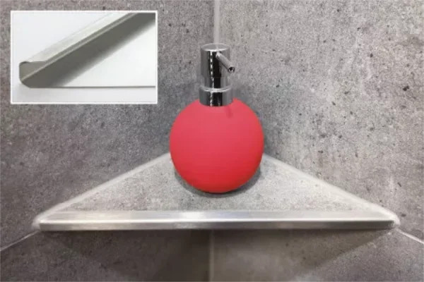 Ablago Q250 burkolható zuhany sarokpolc, négyzet él, szálcsiszolt, háromszögletű (ablq250)