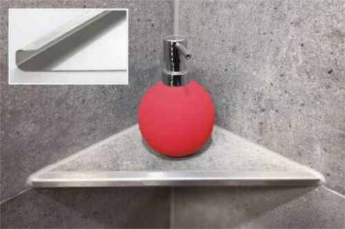 Ablago Q280 burkolható zuhany sarokpolc, négyzet él, szálcsiszolt, háromszögletű (ablq280)