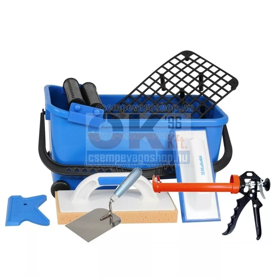 Burkoló mosóvödör 16 liter, görgő+rács +szivacs+behúzógumi +kanál+szilikonozó készlet (mak1520cs4)