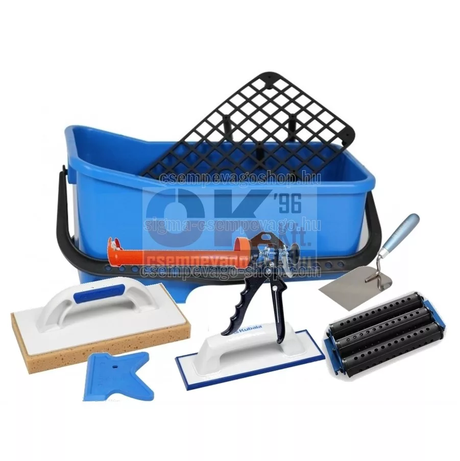 Burkoló mosóvödör 20 liter, tripla görgő+rács +szivacs+behúzó +kanál+szilikonozó készlet (mak1524cs4)