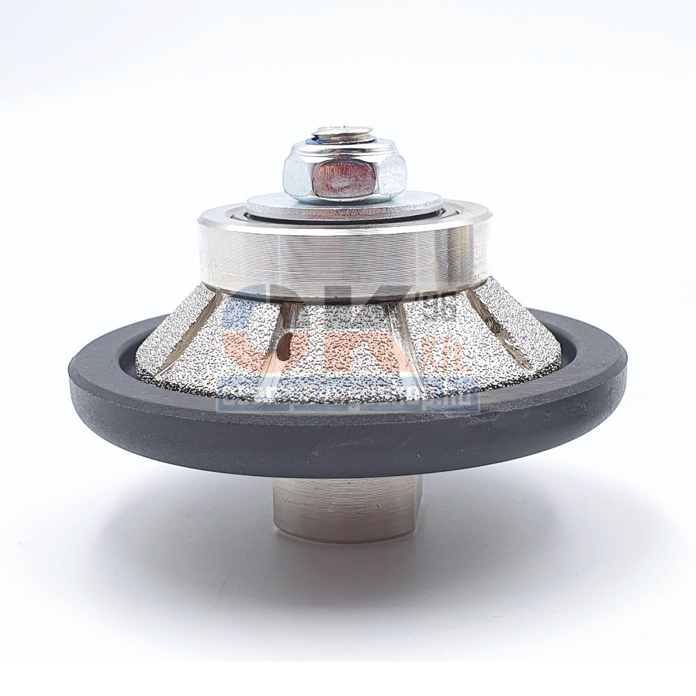 A gyémántszemcsés élképző tárcsa sarokcsiszolóra szerelhető és száraz vagy vizes használat mellett alkalmazható.