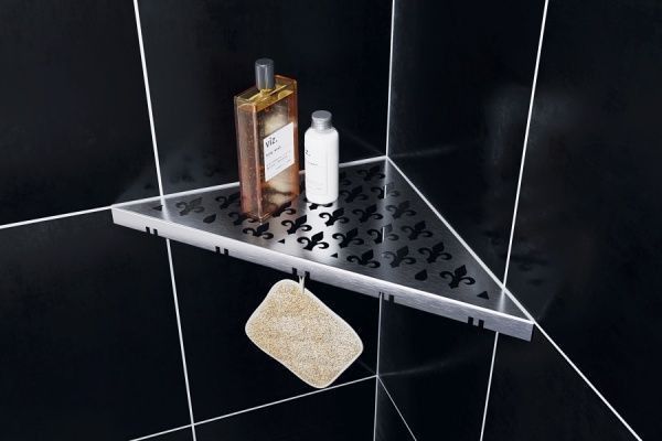 Ablago Classic Design zuhany sarokpolc fogassal, szálcsiszolt, háromszögletű (abl11036)