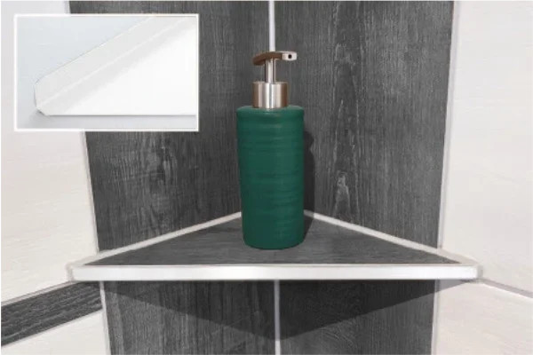 Ablago W220 burkolható zuhany sarokpolc, L él, matt fehér, háromszögletű (ablw220we)