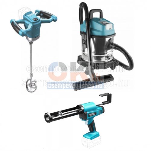 Dedra akkumulátoros gép szett burkoloknak keverőgép + szilikon kinyomó + porszívó   (akkuszett2)