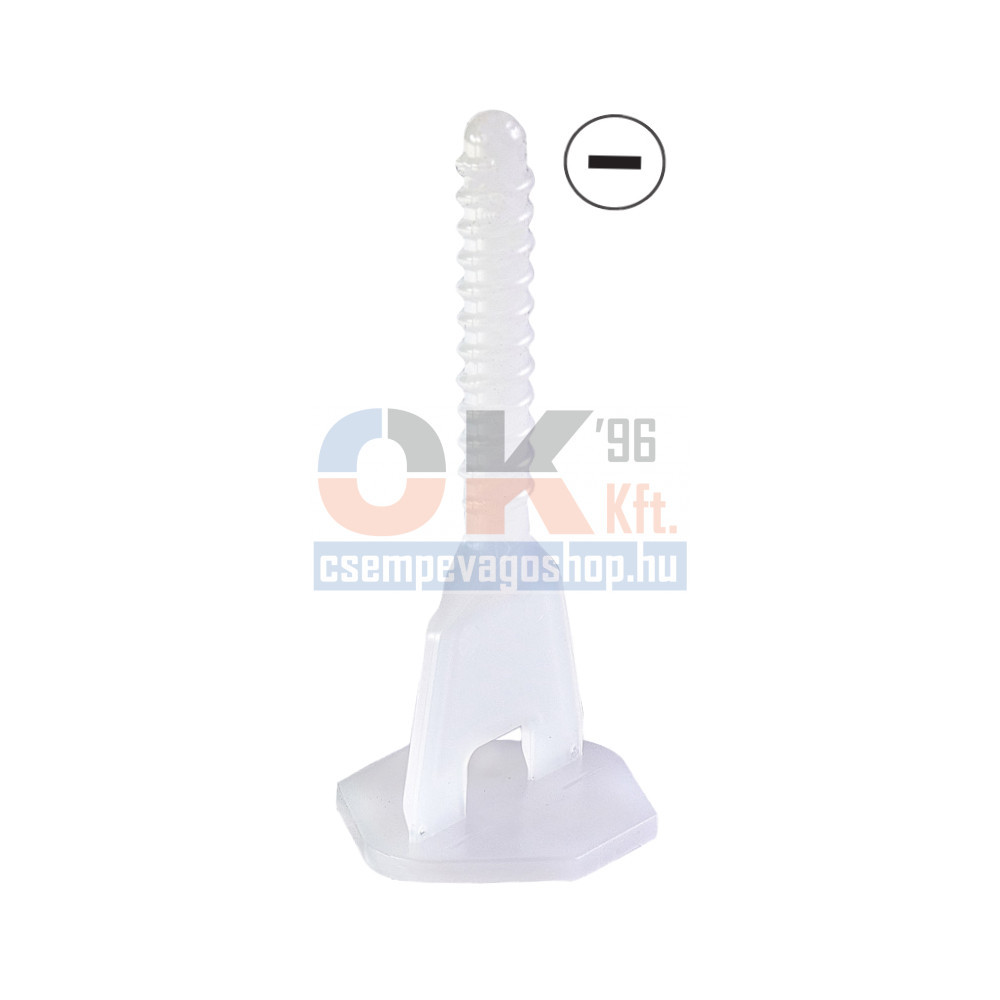Egyenes kialakítású, a burkólólap oldalaihoz illeszthető csavaros talp elem. 1,5 mm fugatávolsággal, 3-15 mm közötti lapvastagsághoz.