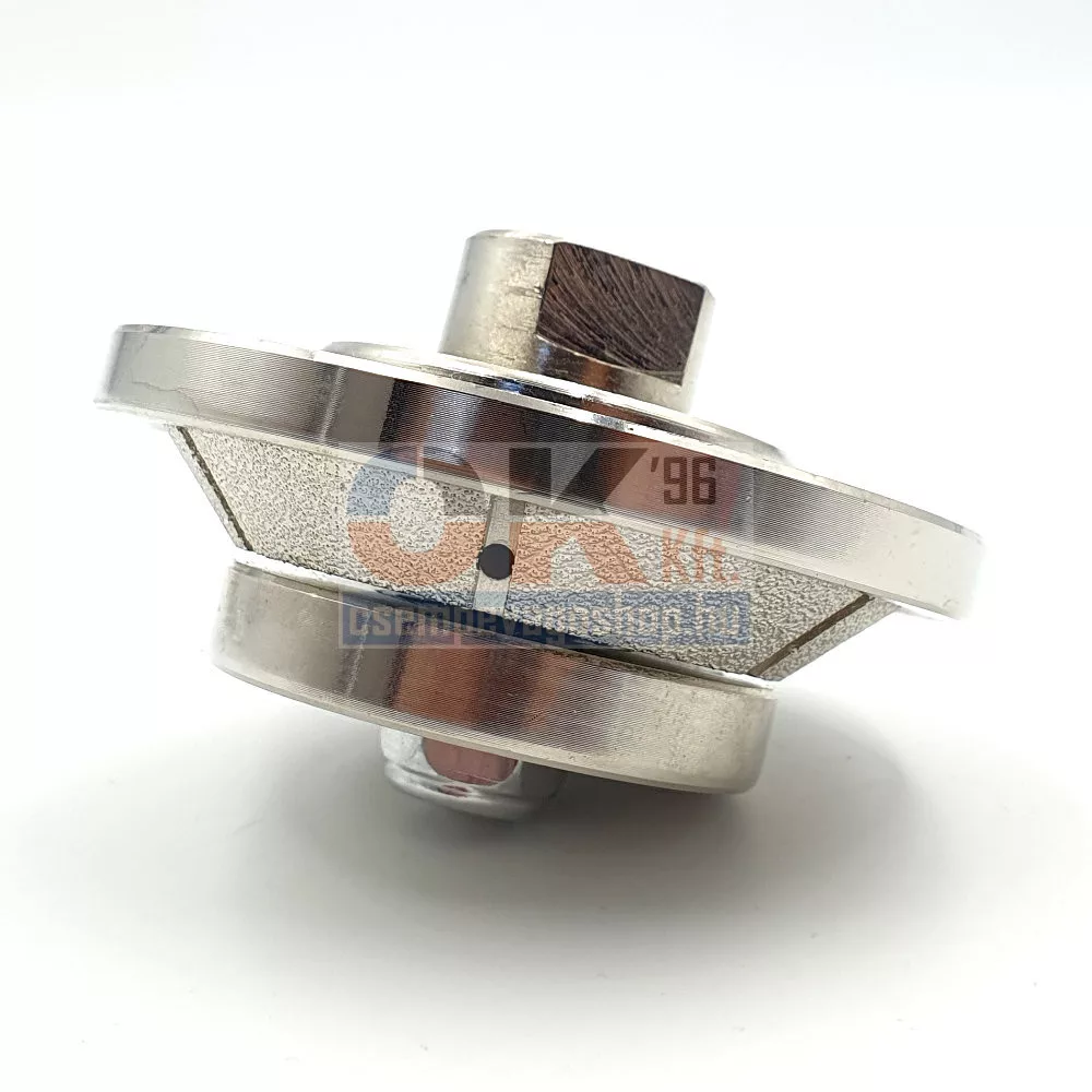 A gyémántszemcsés élképző tárcsa sarokcsiszolóra szerelhető és száraz vagy vizes használat mellett alkalmazható.