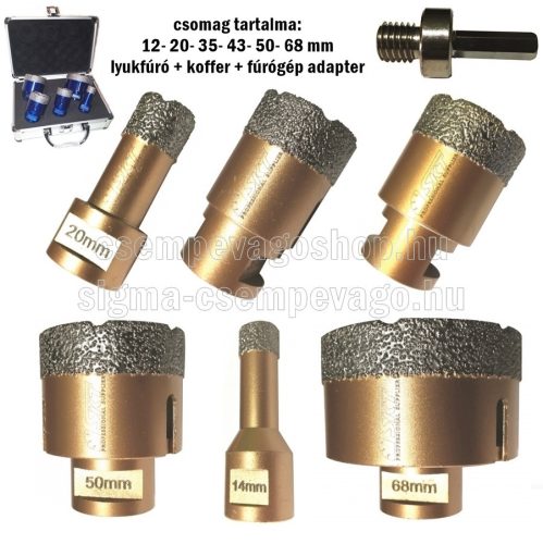SKT 226 PRO gyémánt lyukfúró készlet 12-20-35-43-50-68 mm (skt226007b)